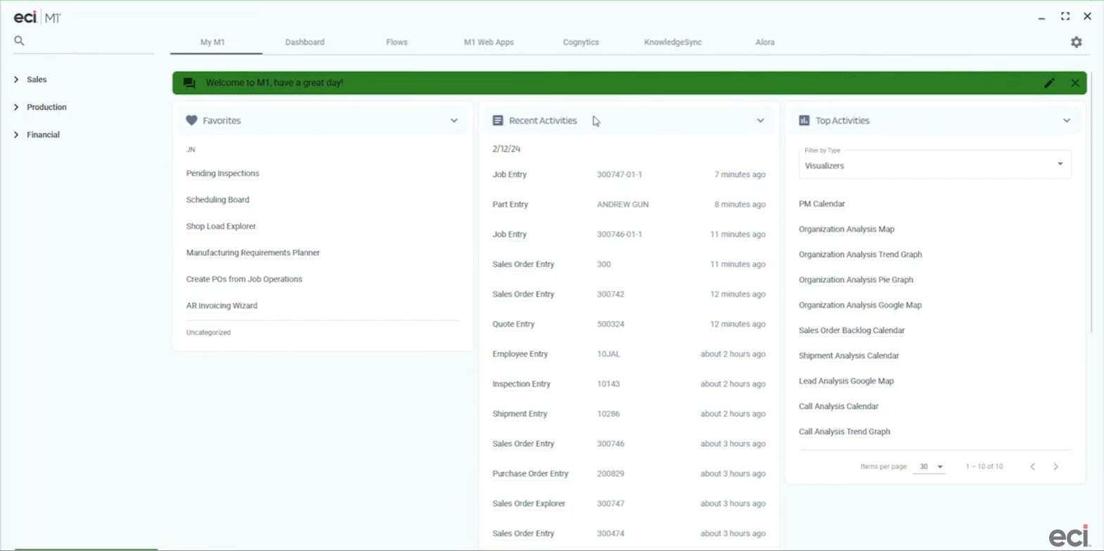 ECi M1, from ECi Software Solutions, is an ERP solution aimed at small-to-medium manufacturers, operating in industry sectors ranging from aerospace, automotive and fabricated metal products to electronics, machinery, welding, and woodworking.