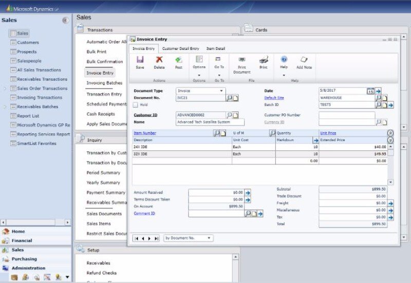 The financial management and accounting aspect of Dynamics GP allow users to control budgets, assets and, banking, these include built-in reporting and analytics features as well as account level security access.