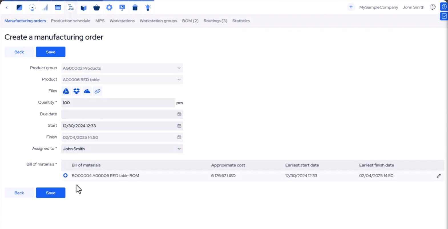 - Automated, accurate planning with a drag‑and‑drop Gantt chart and calendar lets you create realistic production schedules and reschedule on the fly by simply dragging manufacturing orders and operations.