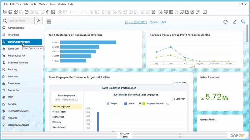- Sales and customer management: Boost sales and enhance customer relationships with integrated CRM functionality. SAP Business One helps you manage the entire sales process and customer lifecycle more effectively, from initial contact to final sale and after-sales service.