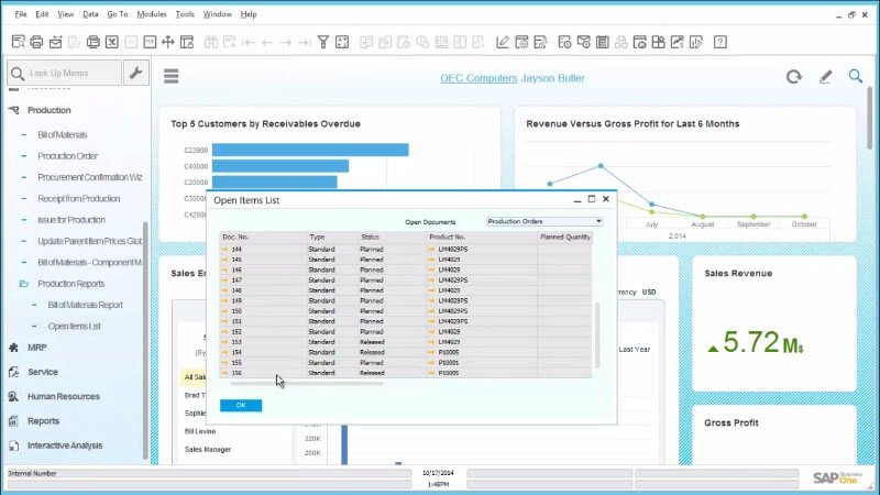 - Production and manufacturing: For small businesses with manufacturing needs, SAP Business One offers tools to manage production planning, resource allocation, and production scheduling, ensuring optimal use of resources and timely product delivery.