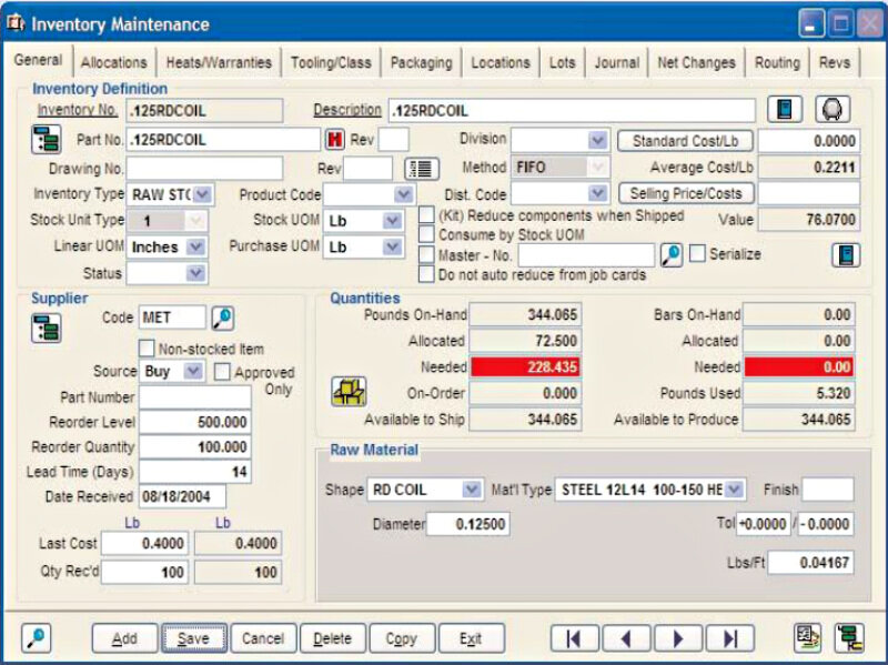 Visual EstiTrack ERP is an on-premises shop management system that runs on all current Microsoft operating systems. Both single and mixed-mode manufacturing are supported. The system also includes barcode tracking, costing, scheduling, Gantt charts, a visual shop floor, material management, purchasing, shipping, and quality management.